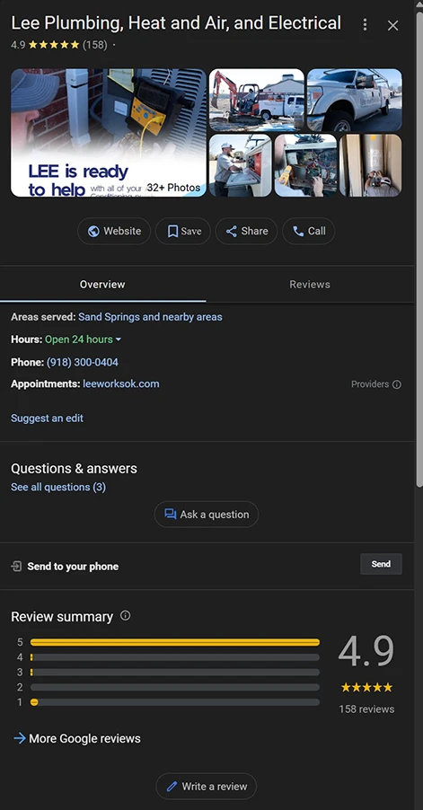 Instagram works because people are visual. Before-and-after shots of panel upgrades, time-lapse videos of installations, and behind-the-scenes content showing your team at work builds trust. Use local hashtags like #TulsaElectrician or #BrokenArrowHomeServices so nearby customers can find you.